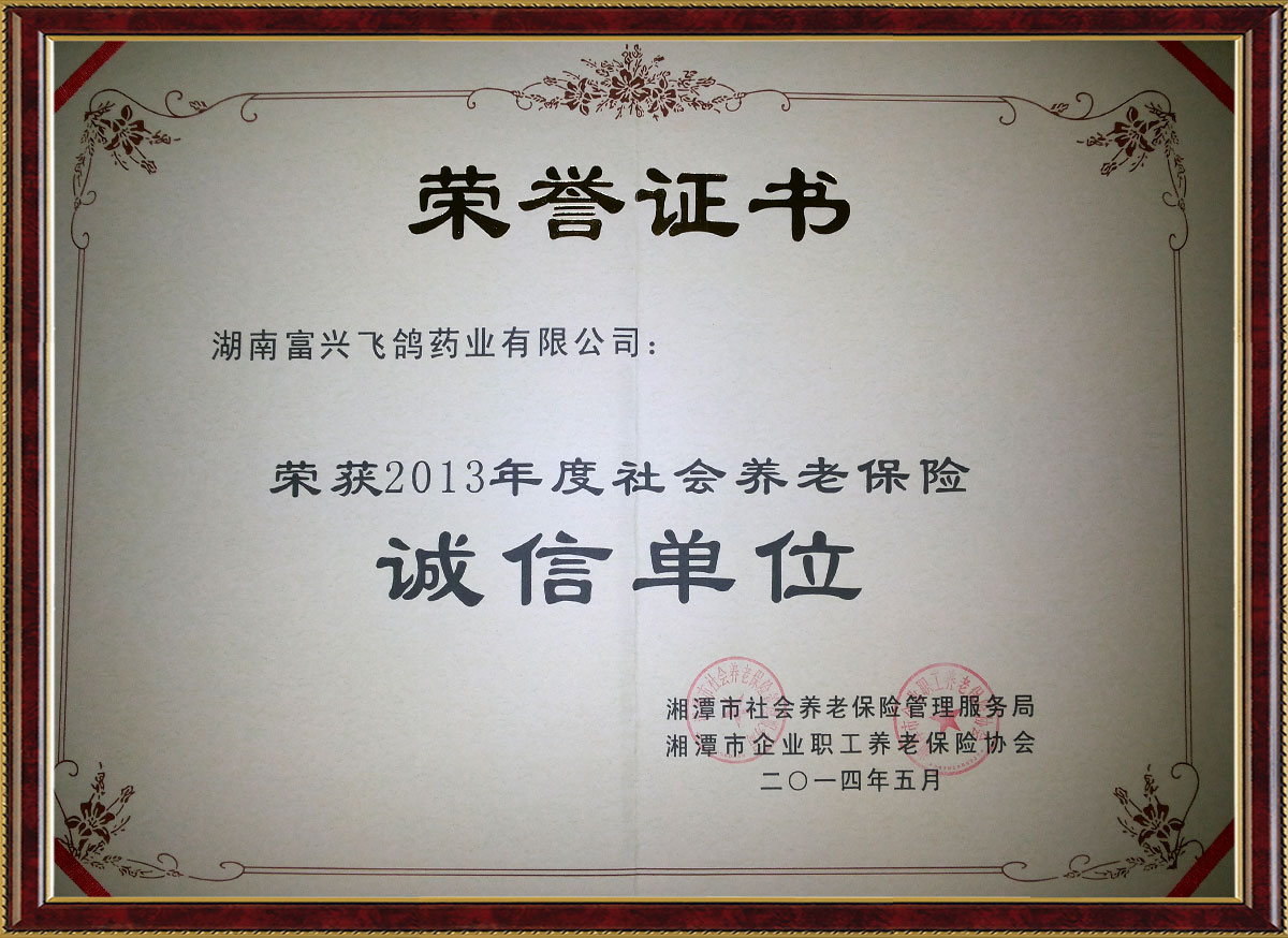 2013年度社會養(yǎng)老保險誠信單位