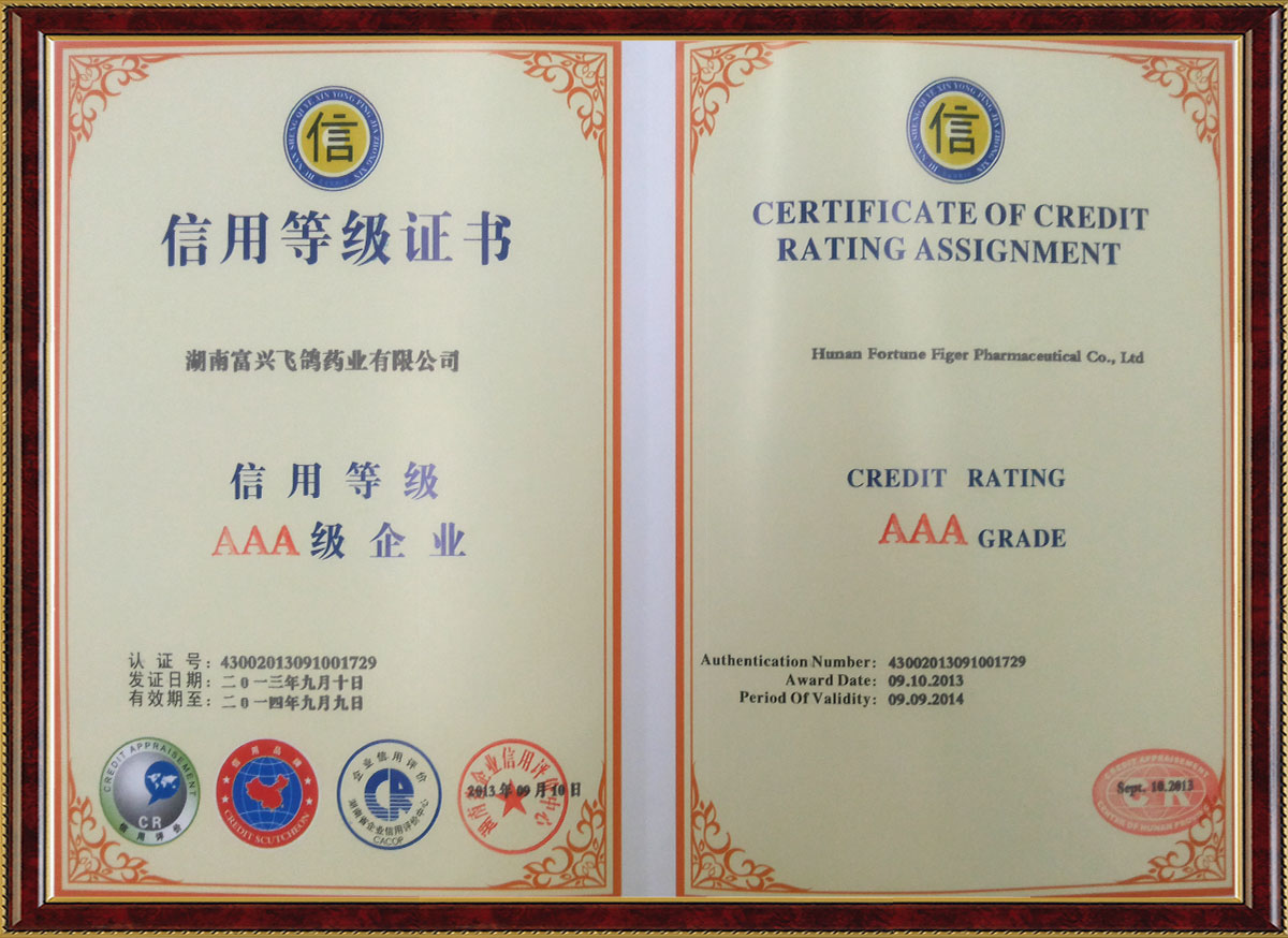 AAA信用等級證書