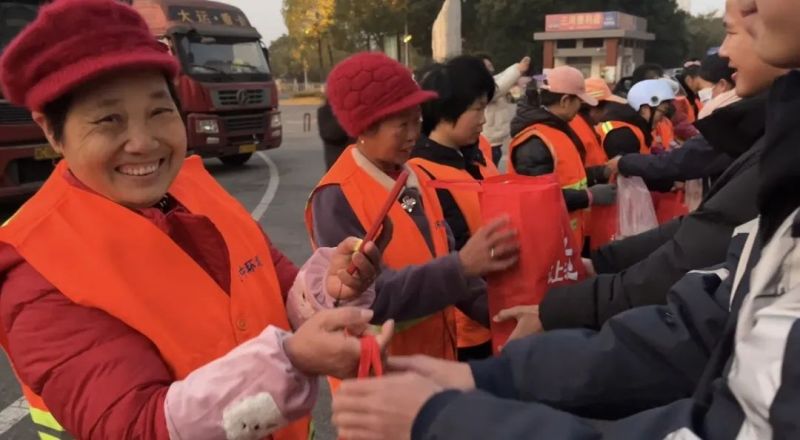 在晨曦薄霧中,孩子們早早排好隊,手上提著由富興飛鴿藥業(yè)、長郡湘潭高新實驗學(xué)校、孩子們精心準(zhǔn)備的暖心物資和愛心早餐,并向湖南湘潭320名環(huán)衛(wèi)工人送上了暖心物資和愛心早餐。除了送上物資,孩子們和志愿者還主動幫助環(huán)衛(wèi)工人進(jìn)行清掃工作,環(huán)衛(wèi)工人服務(wù)區(qū)域打掃得煥然一新。